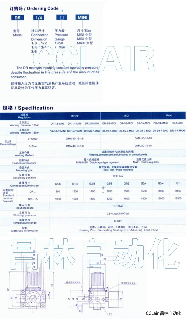 DR-1/8-MINI,DR-1/4-MINI,DR-3/8-MINI,減壓閥
