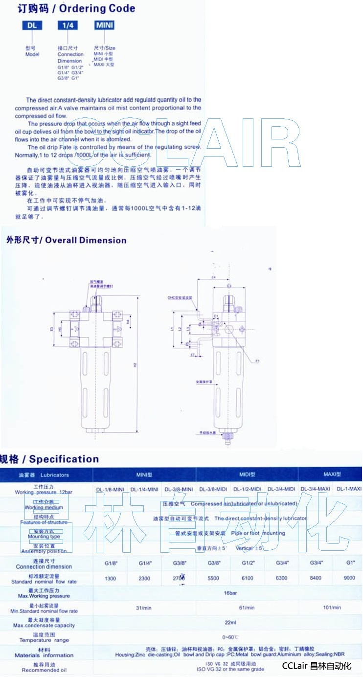 詳細(xì)信息 DL-1/8-MINI,DL-1/4-MINI,DL-3/8-MINI,油霧器