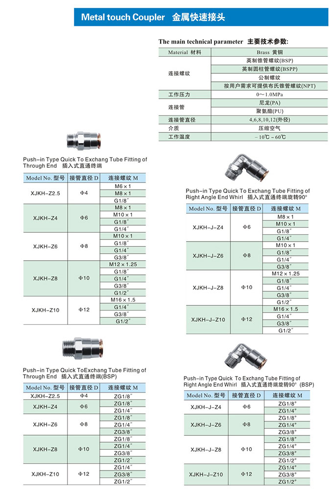 XJKH-Z2.5,XJKH-Z4,XJKH-Z6,XJKH-Z8,XJKH-Z10,XJKH-J-Z2.5,XJKH-J-Z4,XJKH-J-Z6,XJKH-J-Z8,XJKH-J-Z,金屬快速接頭