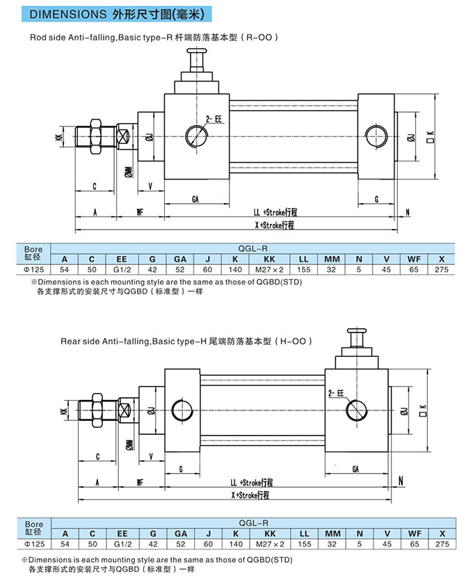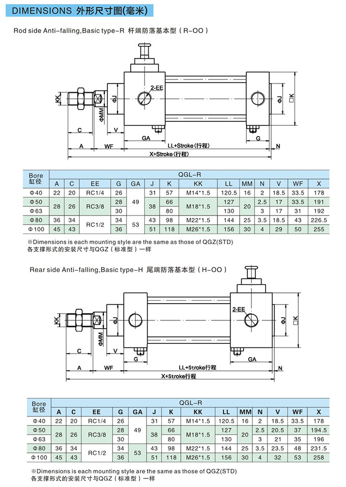 QGL-R,QGL-H,QGL-R-OO-40,QGL-H-OO-40,QGL-R-LB-40,QGL-H-FA-40,防落氣缸