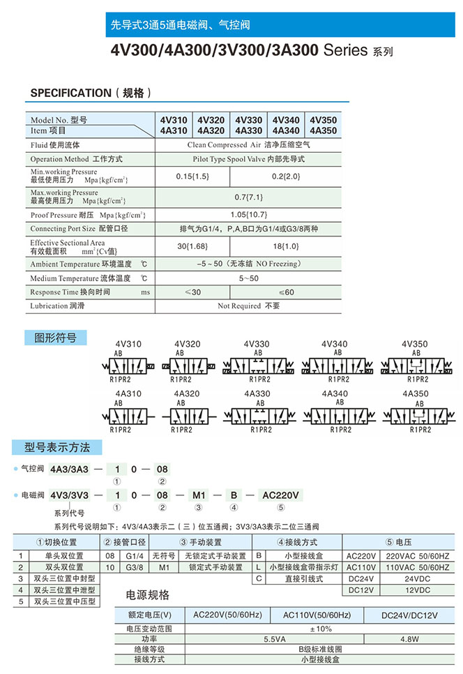 4V310-10,4V320-10,4V330-10,4V340-10,4V350-10,4V310-08,4V320-08,4V310-10-B,先導(dǎo)式3通5通電磁閥