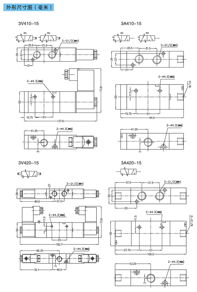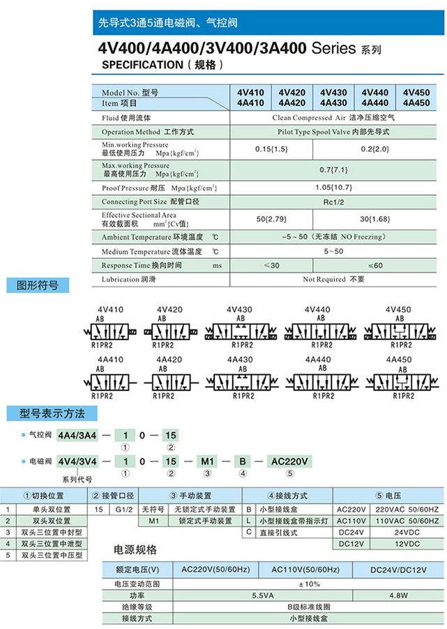 4A410-15,4A420-15,4A430-15,4A440-15,4A450-15,3A410-15,3A420-15,3A430-15,3A440-15,3A450-15,先導式3通5通氣控閥