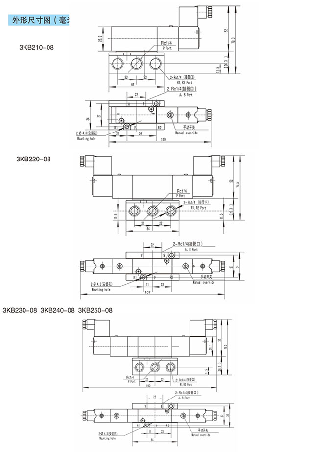 3KB210-08,3KB220-08,3KB230-08,3KB240-08,3KB250-08,3KB210-08-B,先導(dǎo)式五通電磁閥