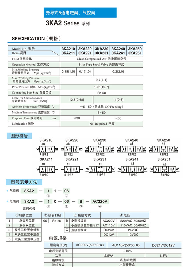 詳細(xì)信息 3KA210-06,3KA220-06,3KA230-06,3KA240-06,3KA250-06,3KA210-06-B,先導(dǎo)式五通電磁閥