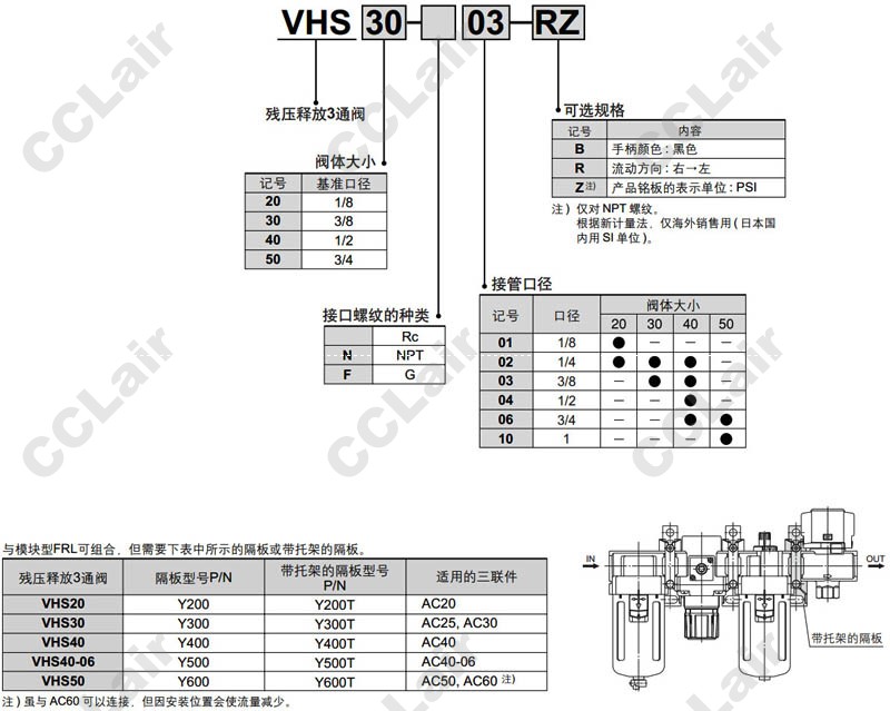 VHS20-N01,VHS30-N02,VHS40-N03,VHS50-N04,VHS20-F06,VHS30-F10,VHS30-N01,VHS20-N02,VHS20-N03,3通閥