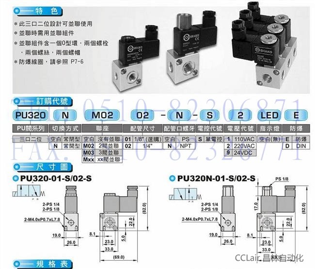 PU320-01-S,PU320-02-S,電磁閥,新恭電磁閥,價格