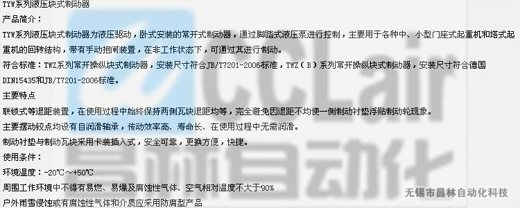 詳細信息 TYW-300,TYW-315,TYW-400,TYW-500,液壓塊式制動器,生產(chǎn)廠家,價格
