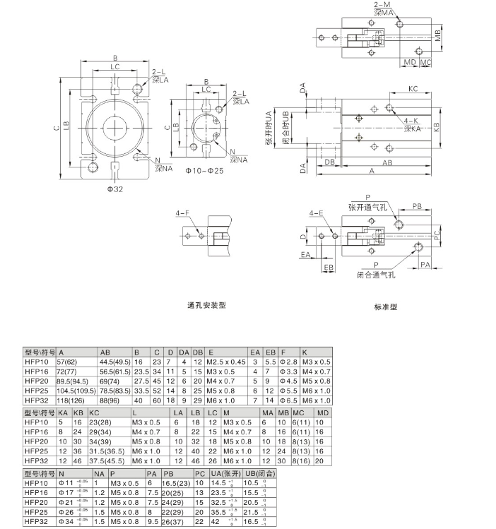 亞德客型氣動手指氣缸 HFP-10,HFP-16,HFP-20,HFP-25,HFP-32,HFP-10N,HFP-16N,HFP-20N,HFP-25N,HFP-32N