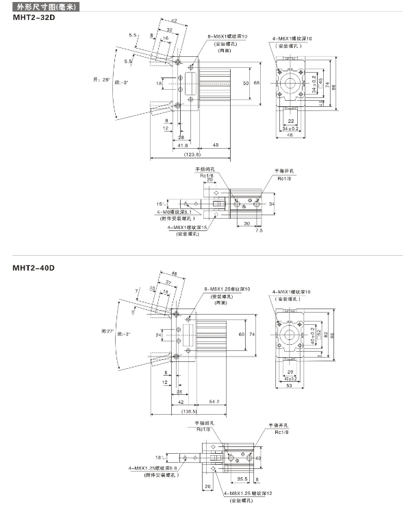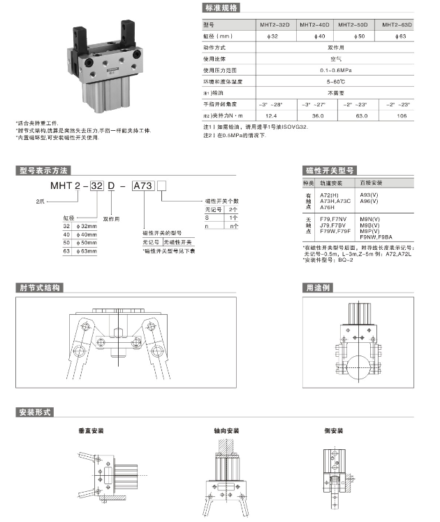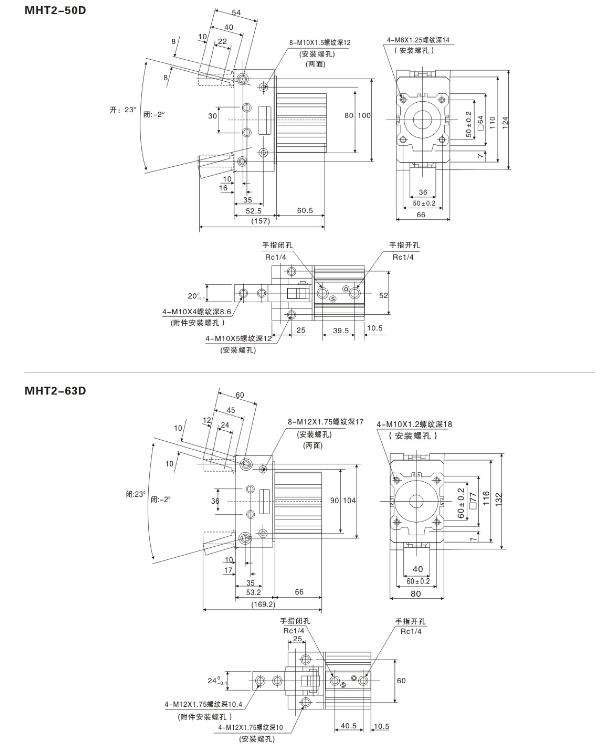 氣動手指氣缸 MHT2-32D,MHT2-40D,MHT2-50D,MHT2-63D