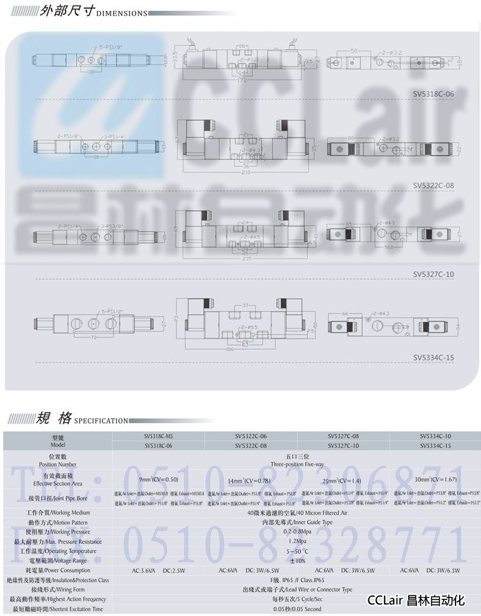 SV5322C-06,SV5318C-M5,SV5327C-08,SV5334C-10,五口二位電磁閥