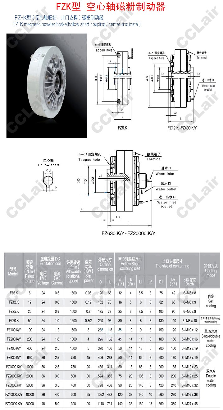 詳細信息 FZ6.K,FZ12.K,FZ25.K,FZ50.K,FZ100.K/Y,FZ200.K/Y,FZ400.K/Y,FZ630.K/Y,空心軸磁粉制動器