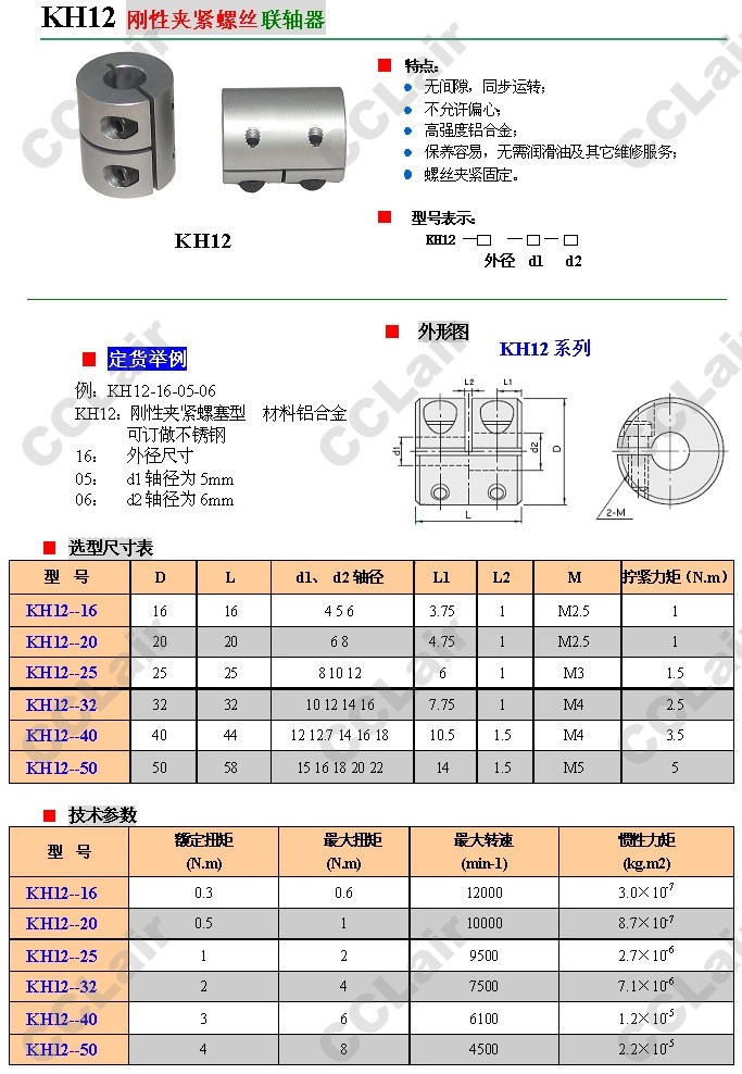 KH12-16,KH12-20,KH12-25,KH12-32,KH12-40,KH12-50,剛性夾緊螺絲聯(lián)軸器