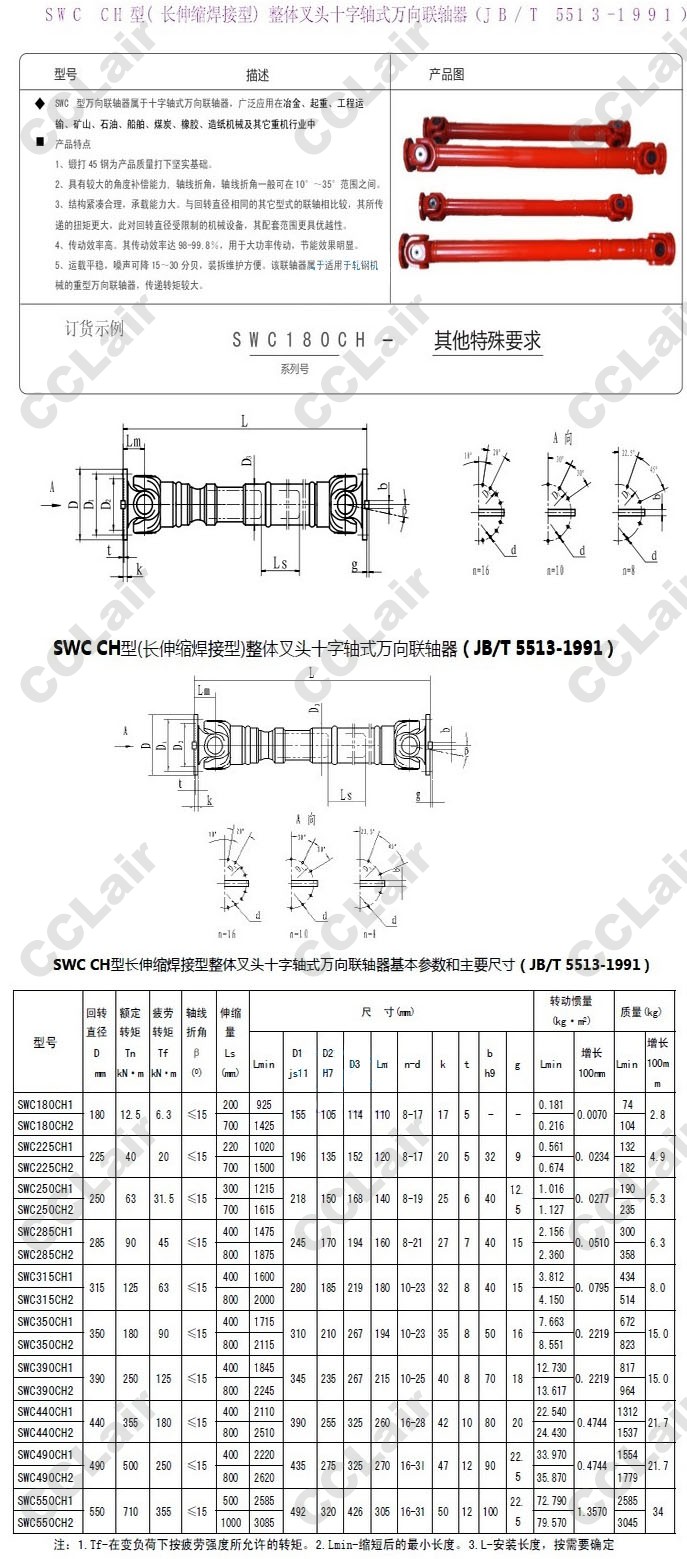 詳細(xì)信息 SWC180CH1,SWC225CH1,SWC250CH2,SWC285CH2,SWC315CH1,SWC390CH2,SWC440CH1,SWC550CH1,十字軸式萬(wàn)向聯(lián)軸器