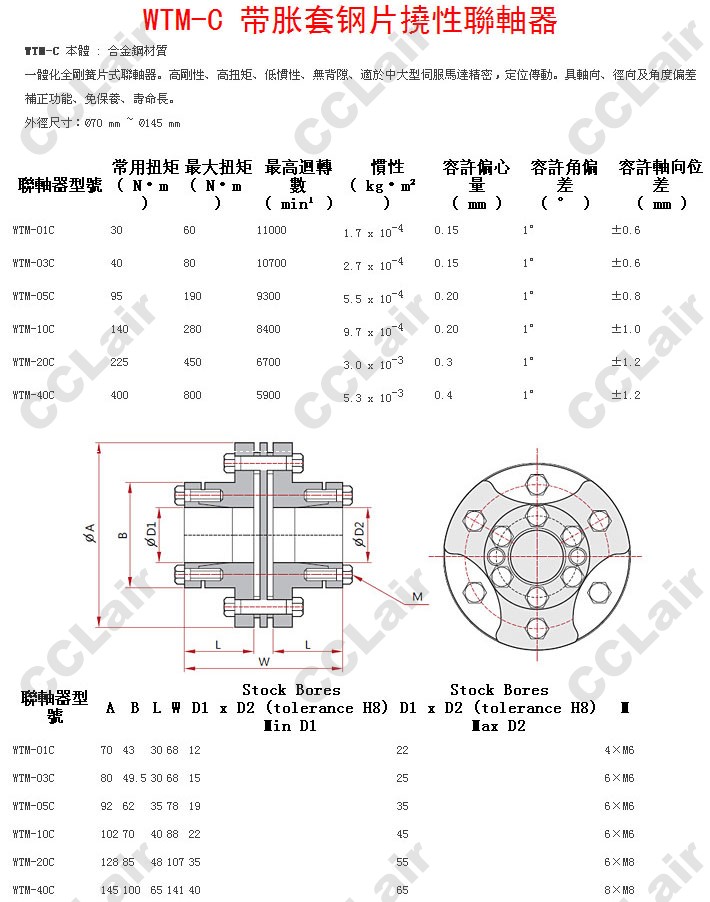 詳細信息 WTM-01C,WTM-03C,WTM-05C,WTM-10C,WTM-20C,WTM-40C,帶脹套鋼片撓性聯(lián)軸器