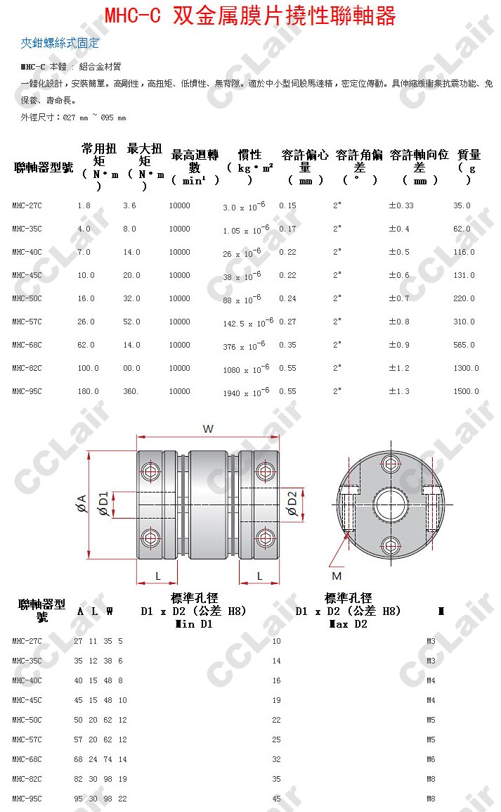 詳細信息 MHC-27C,MHC-35C,MHC-40C,MHC-45C,MHC-50C,MHC-57C,MHC-68C,MHC-82C,MHC-95C,雙金屬膜片撓性聯(lián)軸器
