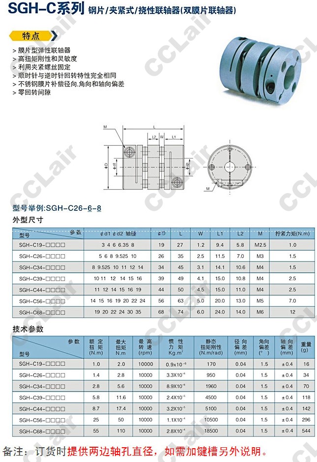 詳細(xì)信息 SGH-C19,SGH-C26,SGH-C34,SGH-C39,SGH-C44,SGH-C56,SGH-C68,雙膜片聯(lián)軸器