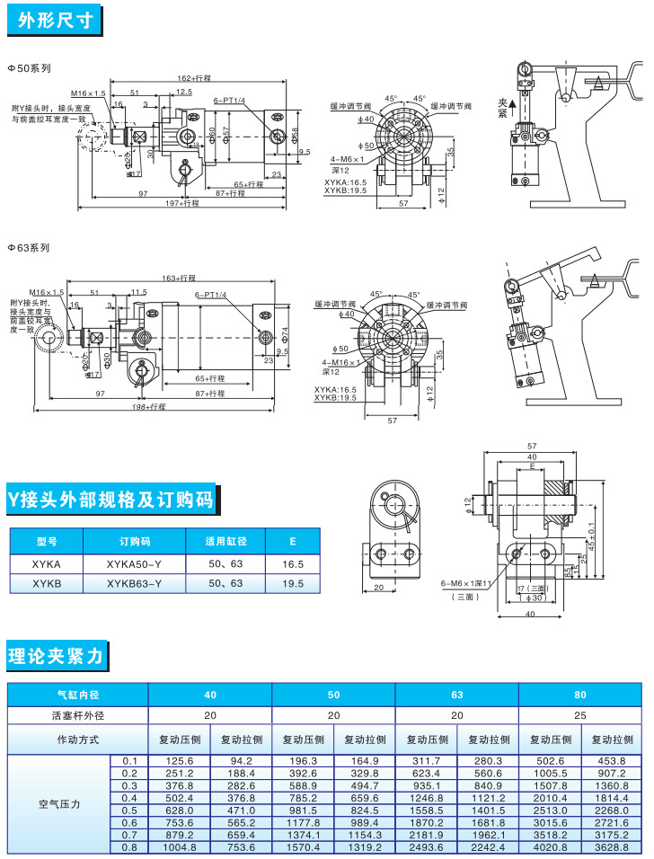 XYKA-40,XYKA-50,XYKA-63,XYKA-80,XYKB-40,XYKB-50,XYKB-63,旋轉(zhuǎn)夾緊氣缸