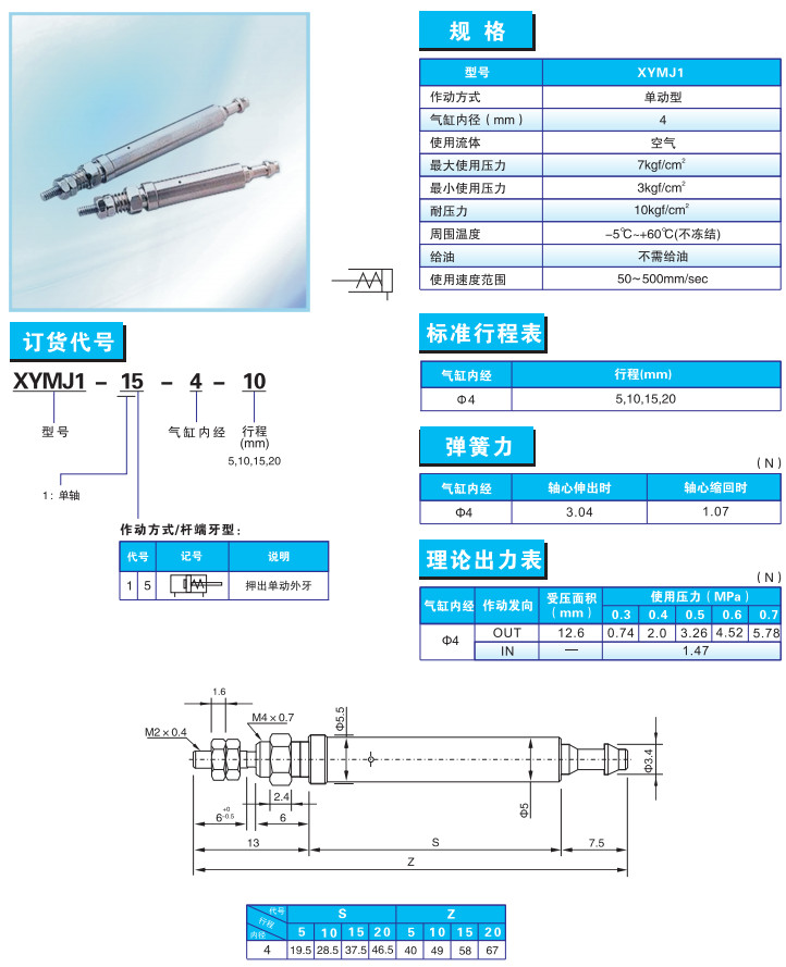 詳細信息 XYMJ1-15-4-5,XYMJ1-15-4-10,XYMJ1-15-4-15,XYMJ1-15-4-20,筆型氣缸