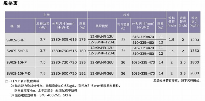詳細(xì)信息 SWCS-5HP,SWCS-5HP-D,SWCS-10HP,SWCS-10HP-D,一線式小型中央供料系統(tǒng)