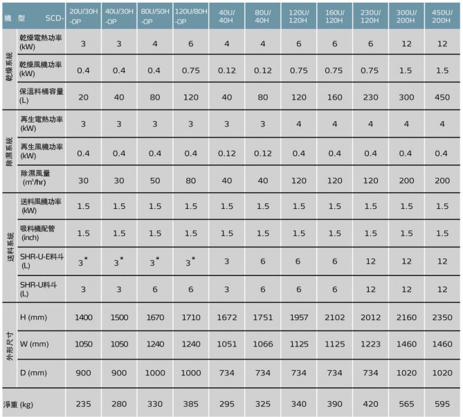 SCD-20U/30H-OP,SCD-40U/30H-OP,SCD-80U/50H-OP,SCD-120U/80H-OP,SCD-40U/40H,SCD-120U/120H,SCD-160U/120H,SCD-230U/120H,SCD-300U/200H,SCD-450U/200H 歐化除濕干燥機(jī)送料組合
