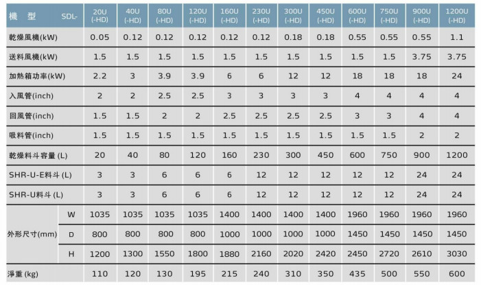 詳細(xì)信息 SDL-20U,SDL-40U,SDL-80U,SDL-120U,SDL-160U,SDL-230U,SDL-300U,SDL-450U,SDL-600U,SDL-750U,SDL-900U,SDL-1200U歐化熱風(fēng)干燥送料組合