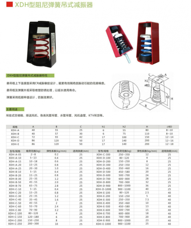 阻尼彈簧吊式減振器 XDH-A-05,XDH-A-10,XDH-A-15,XDH-A-20,XDH-A-25,XDH-B-10