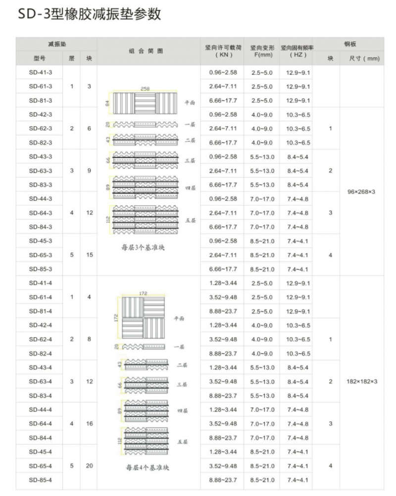 橡膠減振墊 SD-41-6,SD-61-6,SD-81-6,SD-42-6,SD-62-6,SD-82-6,SD-43-6