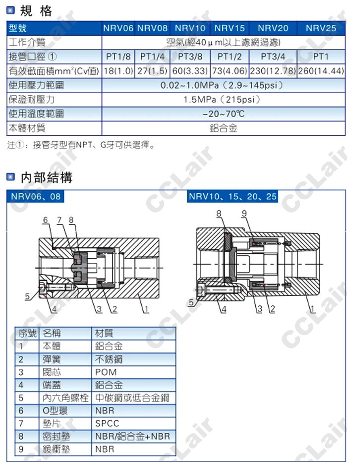 NRV06-T,NRV08-T,NRV10-T,NRV15-T,NRV20-T,NRV25-T,NRV06-G,NRV08-G,NRV10-G,NRV15-G,NRV20-G,NRV25-G,單向閥