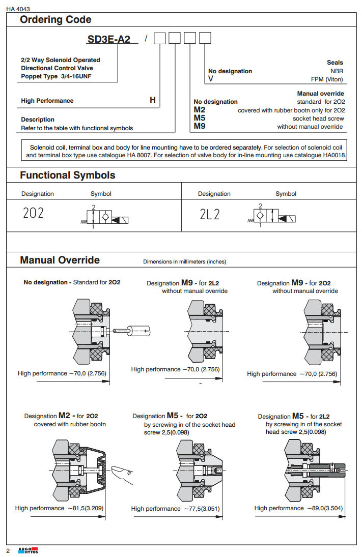 SD3E-A2/H202M2,SD3E-A2/H2L2M2,SD3E-A2/H202M5,SD3E-A2/S2L2M5,SD3E-A2/S202M9,SD3E-A2/S2L2M9,ARGO電磁方向控制閥