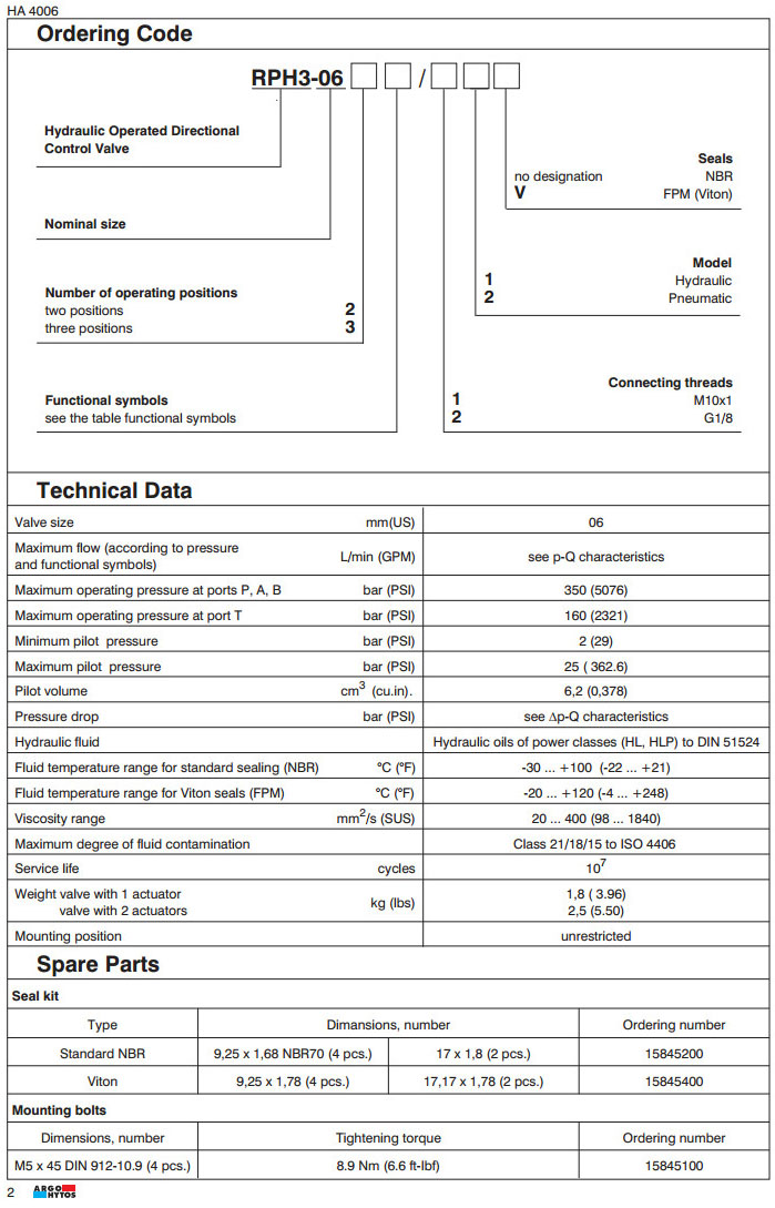 RPH3-062,RPH3-063,RPH3-062Z11/11,RPH3-062J15/12,RPH3-063Z11/11,RPH3-063J15/12,ARGO液壓方向控制閥