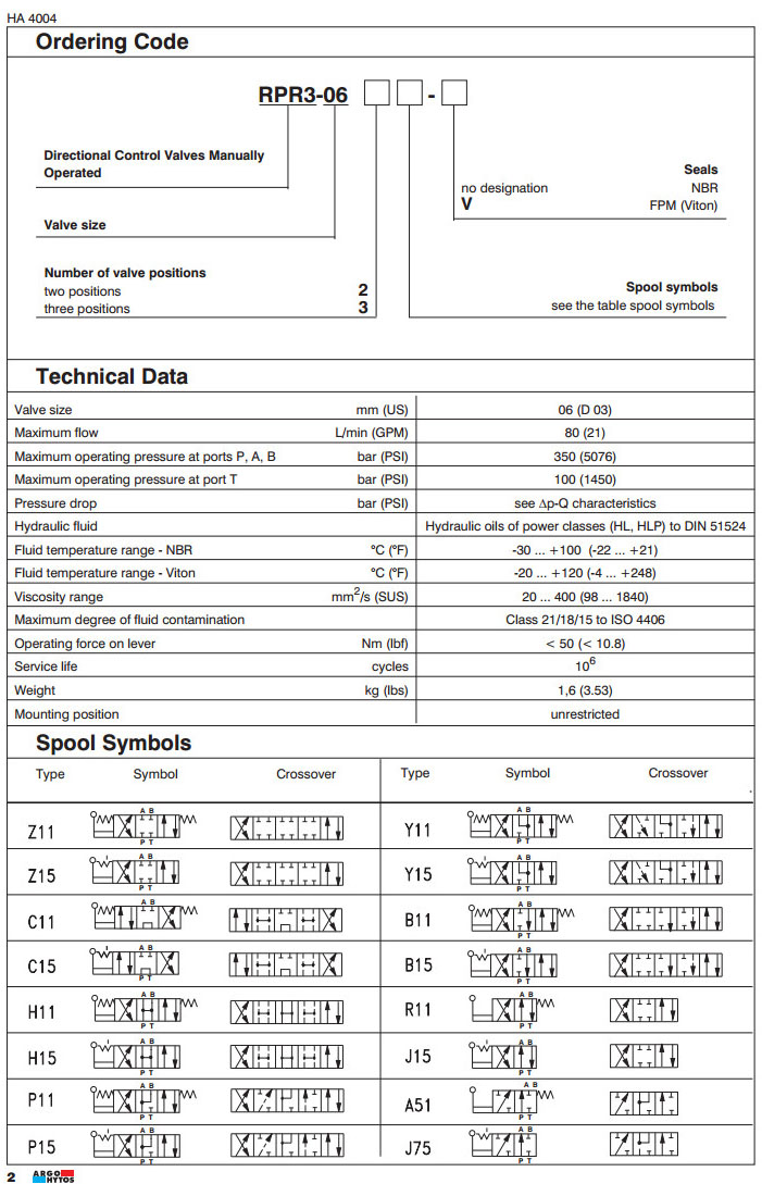 首頁 > 產品&解決方案 > RPR3-062,RPR3-063,RPR3-062Z11,RPR3-063J75,RPR3-062J15,RPR3-063Y11,RPR3-062J75,ARGO手動方向控制閥