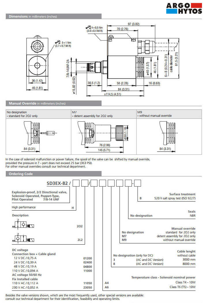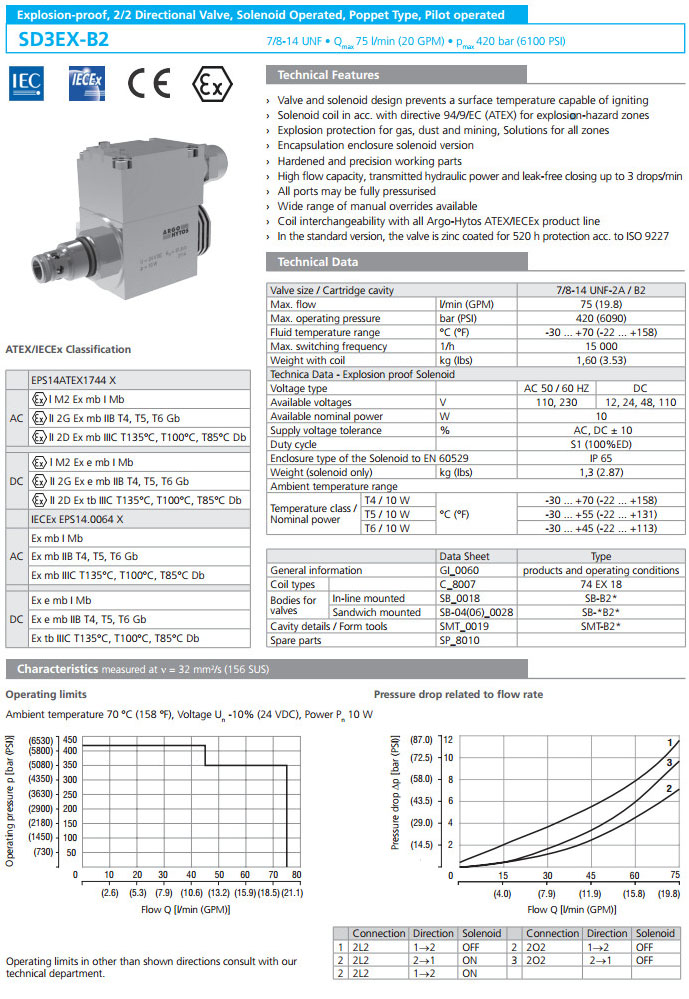 SD3EX-B2/H2O2,SD3EX-B2/H2L2,ARGO電磁換向閥
