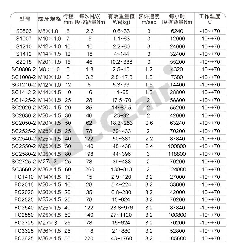 S0806NC,S1412,S1007,S1412NC,S1007NC,S2015,液壓緩沖器