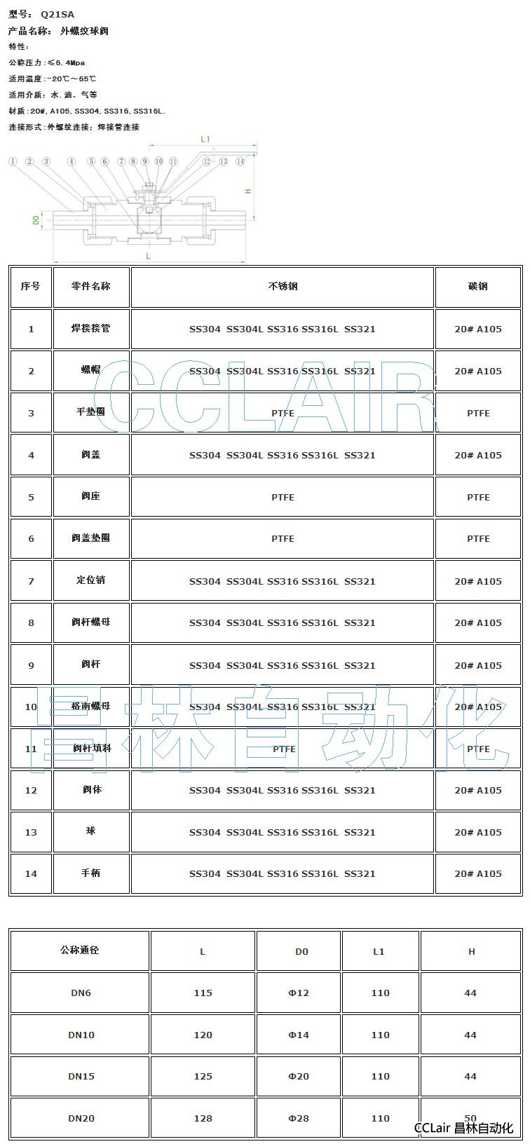 Q21SA,外螺紋球閥