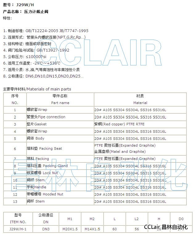 » J29W-1,J29H-1,壓力計截止閥