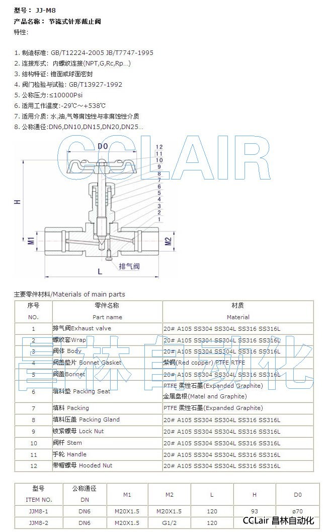 JJM8-1,JJM8-2, 節(jié)流式針形截止閥