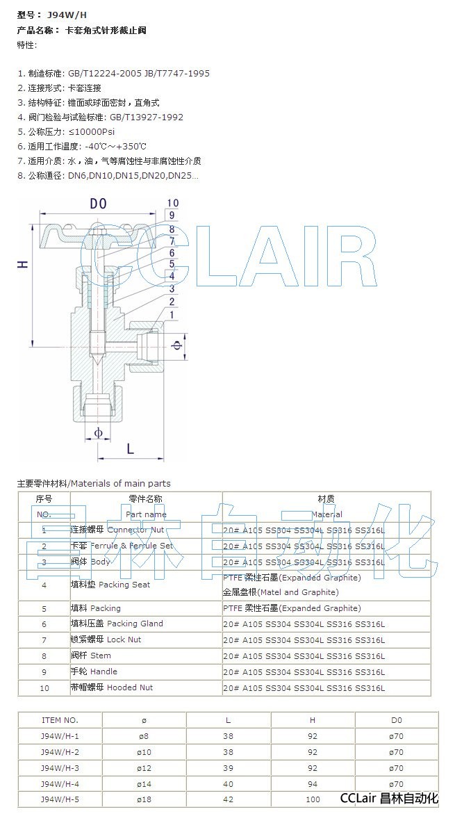 J94W-1,J94W-2,J94W-3,J94W-4,J94W-5, 卡套角式針形截止閥