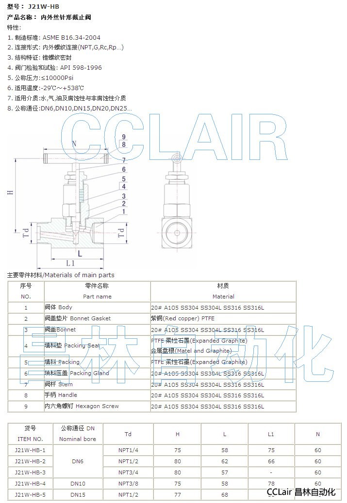 J21W-HB-1,J21W-HB-2,J21W-HB-3,J21W-HB-4,J21W-HB-5, 內(nèi)外絲針形截止閥