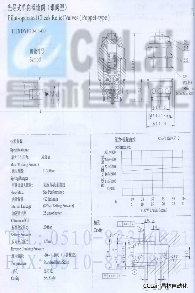 HTXDYF20-03-00,先導(dǎo)式單向溢流閥(錐閥型)