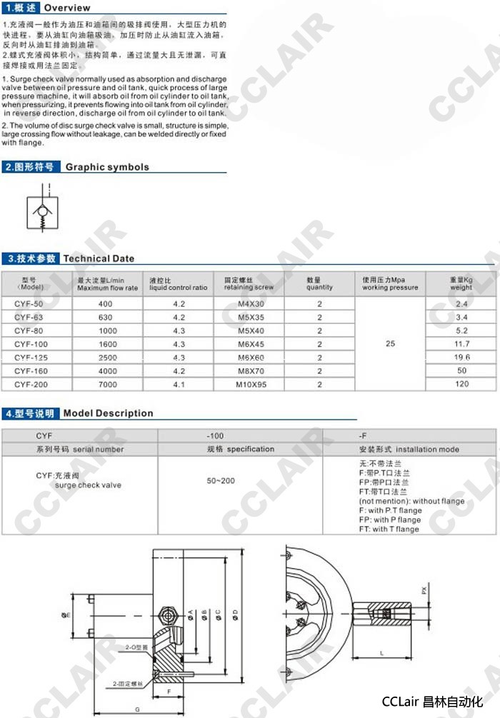 CYF-50,CYF-63,CYF-80,CYF-100,CYF-125,CYF-160,CYF-200,充液閥
