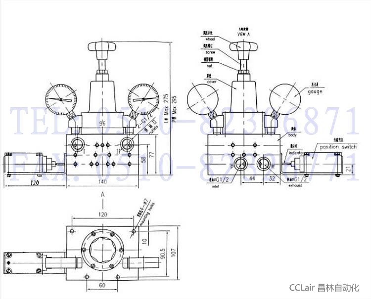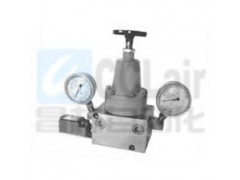本閥為二位四通自動(dòng)液壓換向閥,上平面設(shè)有兩塊壓力表和調(diào)壓手輪。換向壓力由手輪調(diào)節(jié),順時(shí)針壓力升高,反之壓力降低。本閥門進(jìn)油口P與泵出油口連接,回油口R接貯油桶,供油口Ⅰ、Ⅱ分別與兩條供油管路連接。工作時(shí)當(dāng)Ⅰ路油壓達(dá)設(shè)定壓力,換向閥自動(dòng)切換到Ⅱ路,這樣潤(rùn)滑泵就能循環(huán)往復(fù)地向兩條管路供送潤(rùn)滑脂。