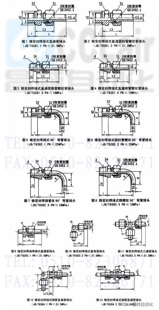 適用于以油、氣為介質(zhì)的管路系統(tǒng)用錐密封焊接式管接頭,工作溫度為-25~+80℃。