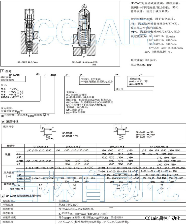 SP-CARTM-3,SP-CARTM-5,SP-CARTM-6,SP-CARTARE-15,直動(dòng)式溢流閥
