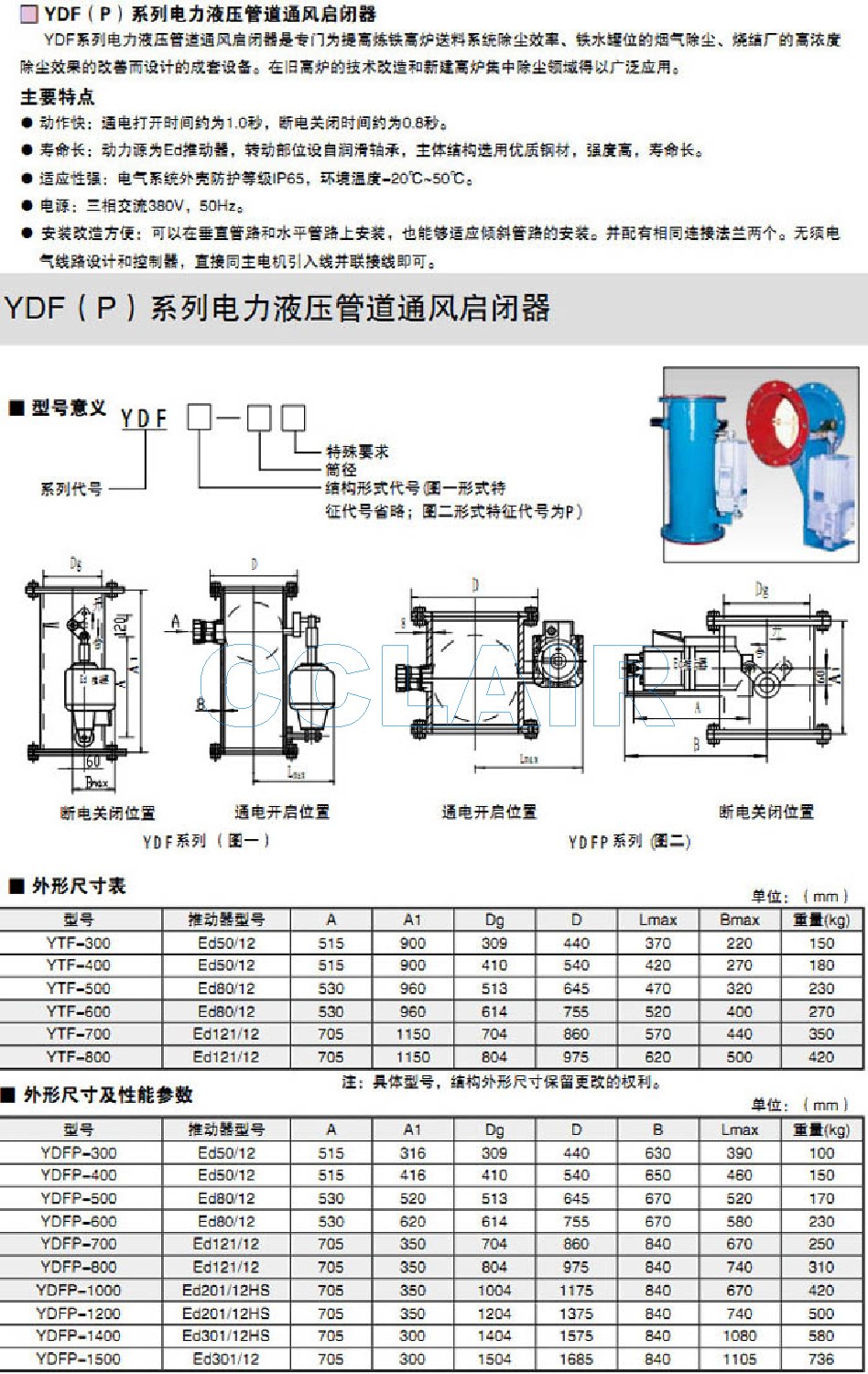 YTF-300,YTF-400,YTF-500,YTF-600,YTF-700,YTF-800,電力液壓管道通風(fēng)啟閉器