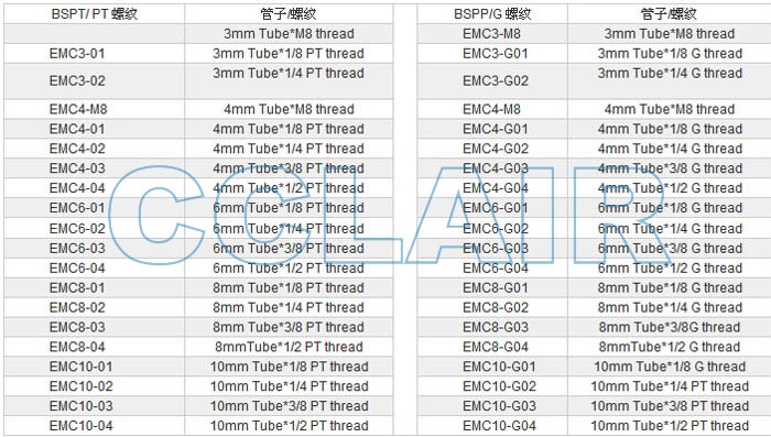 EMC3-01,EMC3-02,EMC4-M8,EMC4-01,EMC6-04,EMC8-01,EMC10-03,EMC10-04,快速接頭