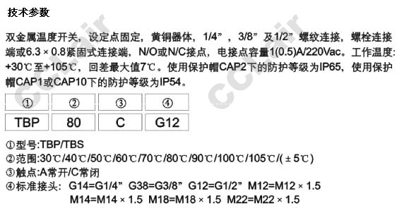 TBS50A,TBP50A,TBP30A,TBP40A,TBP60A,TBP70A,TBP80A,TBP90A,TBS90A,TBS100A,TBS105A,雙金屬溫度開關(guān)