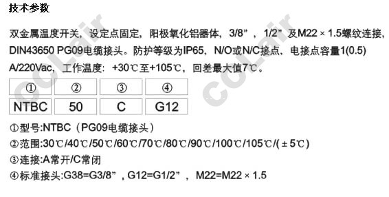 NTBC50A,NTBC30A,NTBC40A,NTBC60A,NTBC70A,NTBC80A,NTBC90A,NTBC100A,NTBC105A,雙金屬溫度開關(guān)