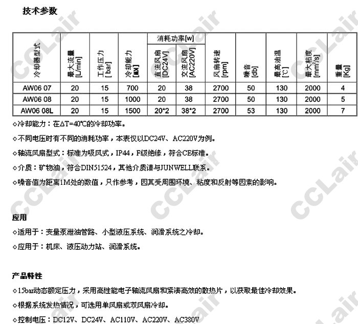 詳細(xì)信息 AW0607-FM,AW0608-FM,AW0607L-FM,AW0608L-FM,冷卻器
