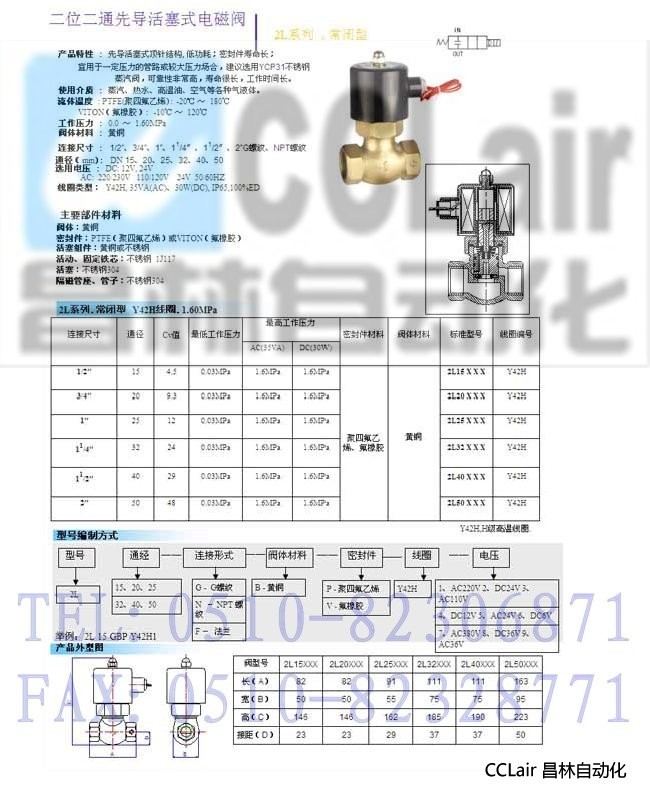 2L15,2L20,2L25, 2L32, 2L40, 2L50,二位二通先導(dǎo)活塞式電磁閥