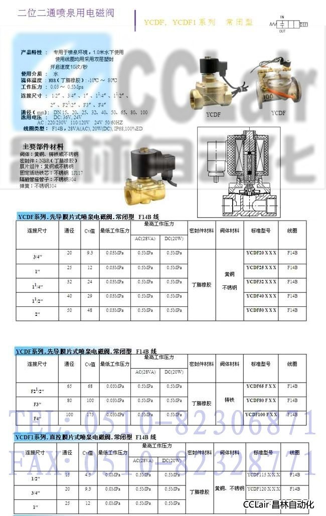 YCDF40,YCDF50,YCDF65F, YCDF80F, YCDF100F,二位二通膜片式噴泉專用電磁閥 ,